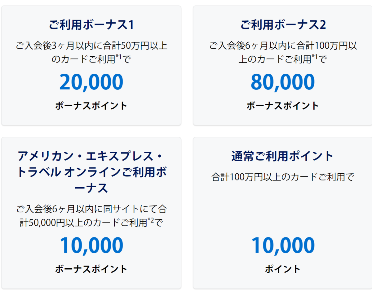 入会後一定期間内に一定金額を利用することで、最大120,000ポイントを獲得可能!